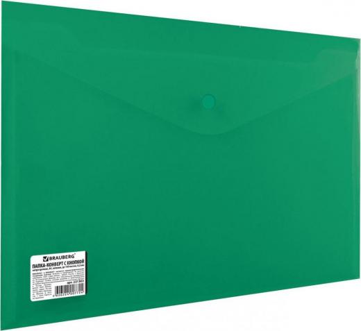 Brauberg Папка-конверт с кнопкой, А4, до 100 листов, непрозрачная, зеленая, СВЕРХПРОЧНАЯ 0,2 мм, 221363