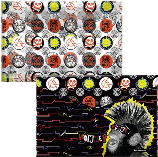 Erich Krause Набор из 4 папок-конвертов А4, 160 мкм, Punky Monkey, полупрозрачн